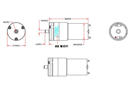 The AM370APM Micro air pump is equipped with a 370 carbon brush motor (voltage can be customized as required). Its casing is processed with blue zinc plating, which significantly enhances corrosion resistance and wear resistance, making it suitable for complex working environments such as humid and dusty conditions.